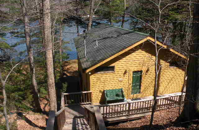 Queechy Lakefront Retreat 2 story home on the lake with dock, living room, dining room, kitchen on 1st floor, bedroom and bath on second.